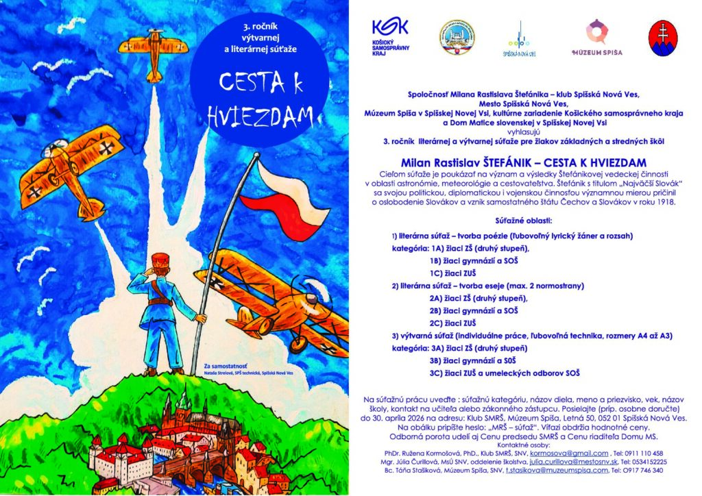 3. ročník výtvarnej a literárnej súťaže „Milan Rastislav Štefánik – Cesta k hviezdam“